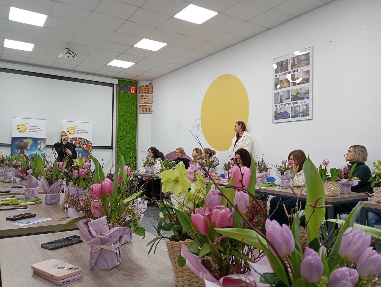 У Vcentri HUB: Голосіїв пройшла зустріч Flowers Therapy — майстерклас зі створення зимових квіткових композицій для жінок із родин військових у межах соціального проєкту «Шанс на відновлення» від ГО «Український Штаб Міжнародної Дипломатії».Цей день був непростим для Києва. У багатьох домівках не було світла, води й опалення. Та попри все, у нашому просторі було відчуття… весни. Бо коли люди збираються разом, щирість, підтримка та добра атмосфера справді можуть додати сил на цілий день.