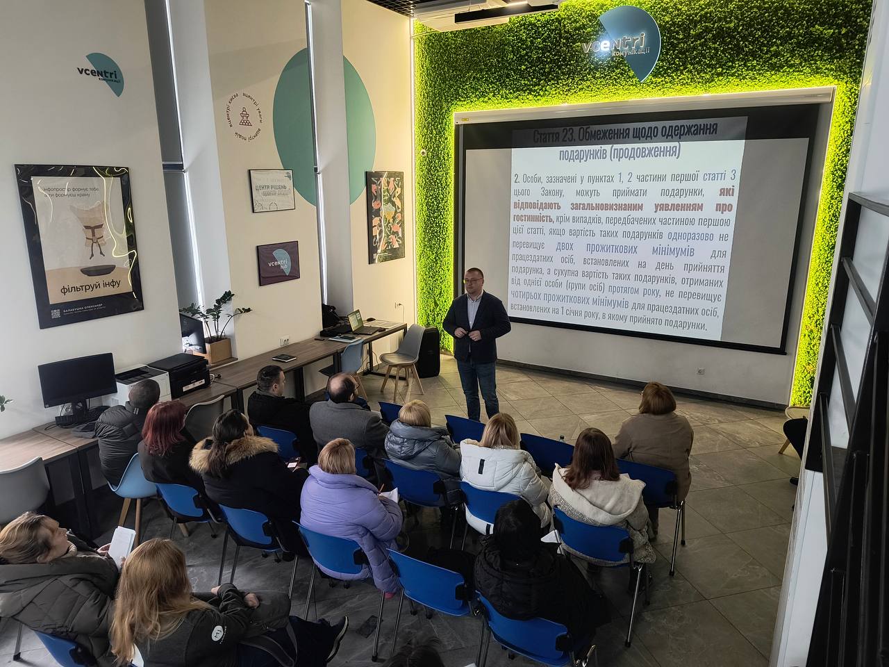 У Vcentri HUB: Оболонь відбувся захід, організований Центром комунікації спільно з Департаментом з питань запобігання та виявлення корупції, присвячений підвищенню антикорупційної компетентності столичних посадовців.Фахівці департаменту провели навчання, під час якого системно та доступно роз’яснили основні вимоги антикорупційного законодавства й акцентували увагу на відповідальності за недотримання норм Закону України «Про запобігання корупції».